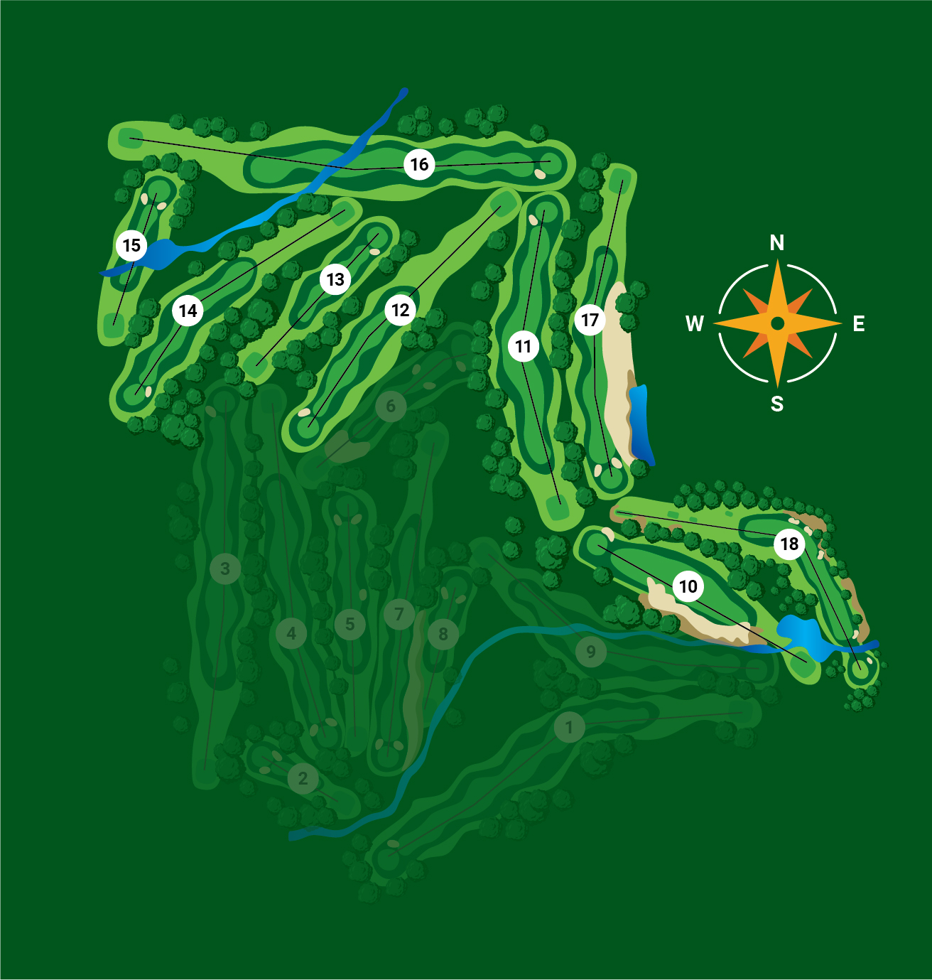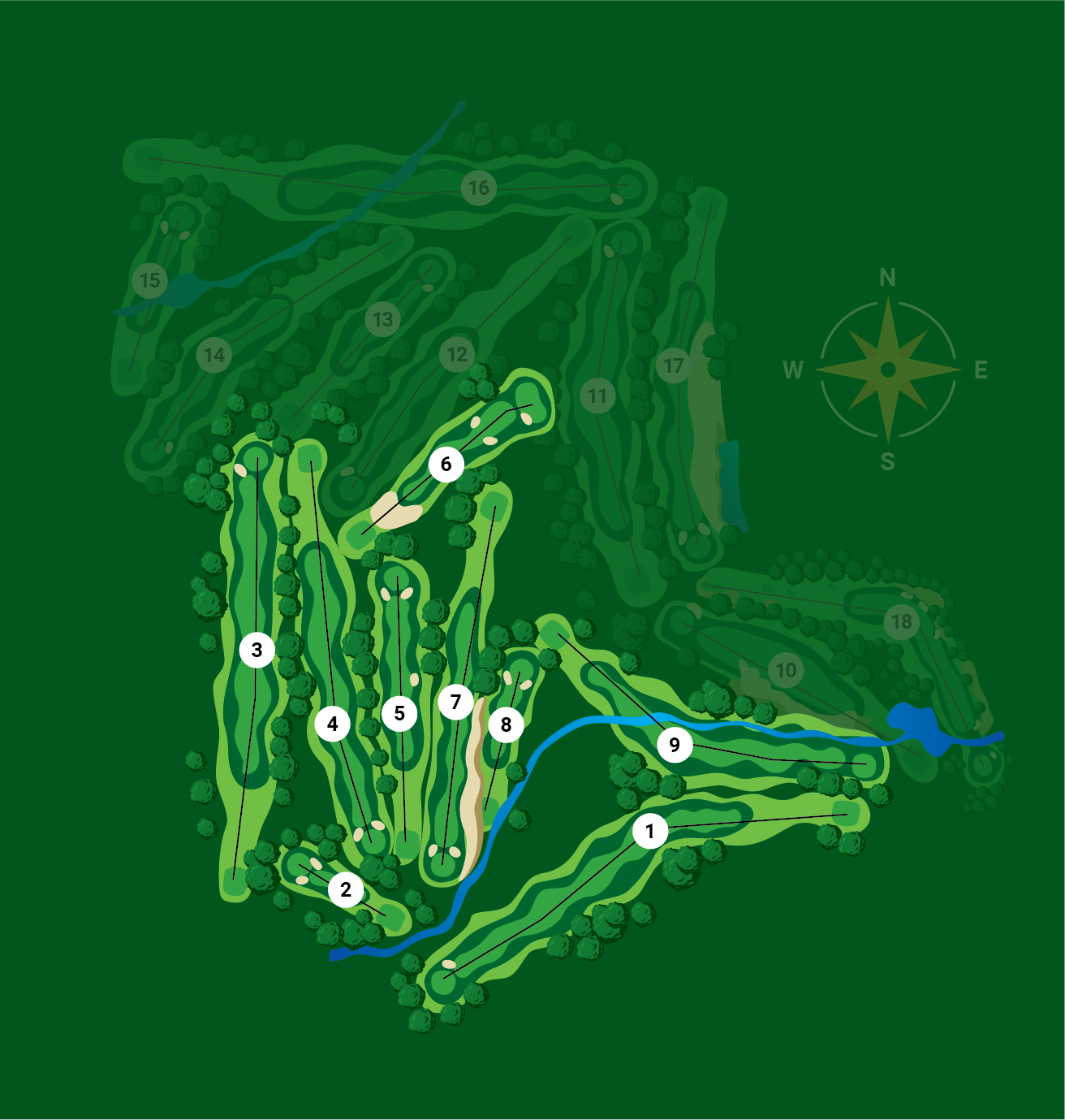 Three Fires Golf Club is a Jerry Mathews-designed public course featuring three 9-hole courses. All 27 holes are well groomed with tree-lined fairways, sand traps, ponds, and creeks. Our practice facility consists of a large range and two chipping and putting greens.
